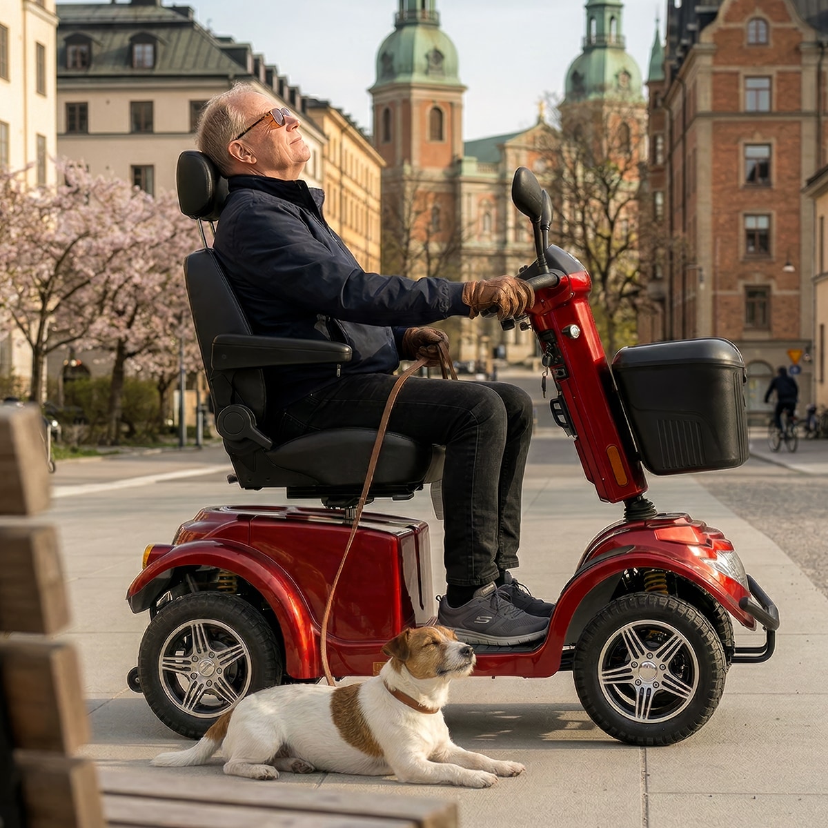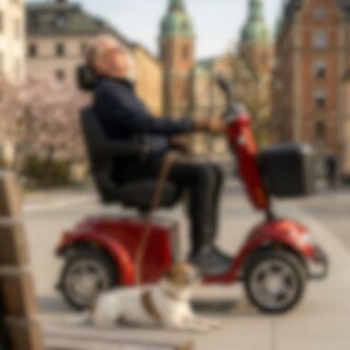 Modellen levereras dessutom med korg fram samt backspeglar. Blimo X-1400 får framföras på trottoarer och i butiker så länge man håller gångfart och kräver inget körkort!