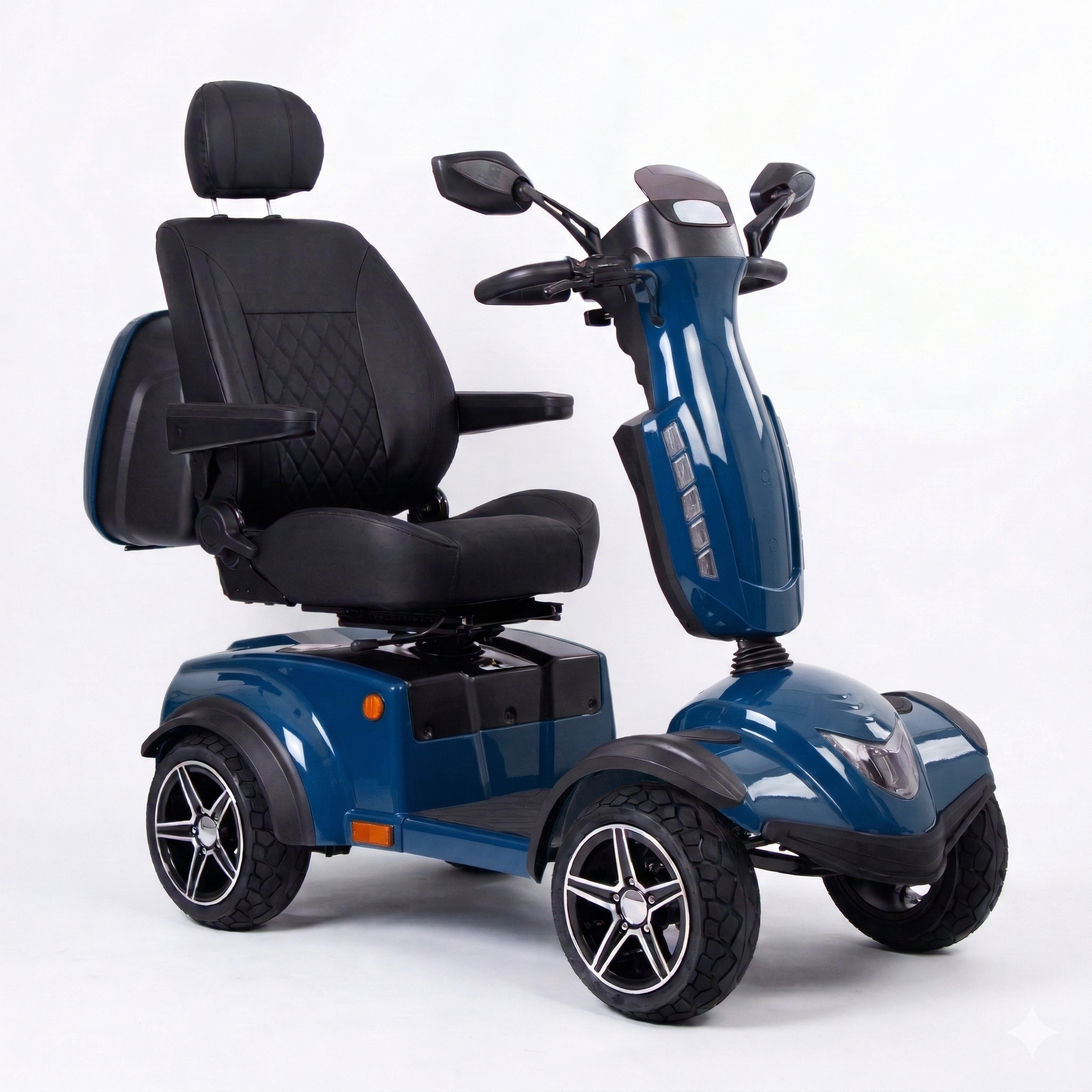 Blimo X-950 Premium är mediummodellen i vår Premiumserie och passar dig som inte kräver den största och starkaste promenadscootern men ändå vill ha lång räckvidd, hög komfort, smidig körning och den allra senaste tekniken inom promenadscooters.
