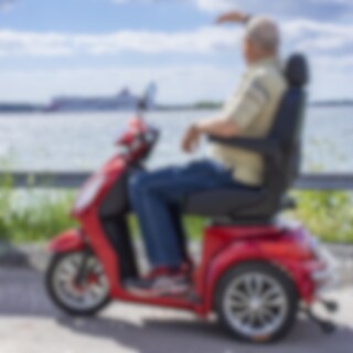 En natts laddning ger en imponerande räckvidd på upp till fem mil. Med en toppfart på ca 20 km/h och en kraftfull motor som klarar de flesta terränger, inklusive backar, grusvägar och gräsmattor, är detta en av de snabbaste promenadscooters på marknaden.